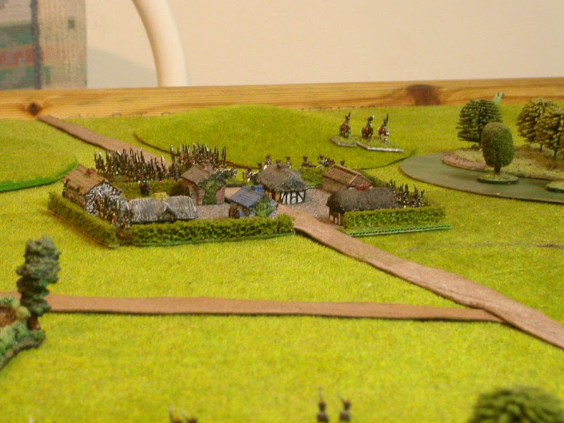 As the enemy infantry leave the main village, the other Guard cavalry formation moves forward onto our right flank.